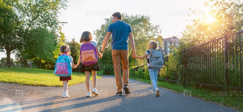 Родители и ученики идут в школу