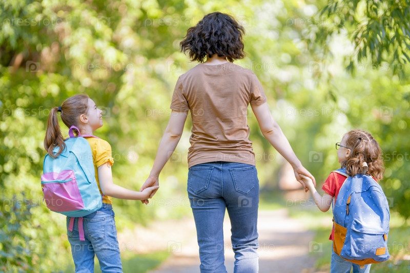 Родители и ученики идут в школу