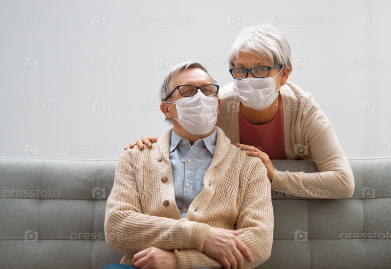 Пожилая пара в масках