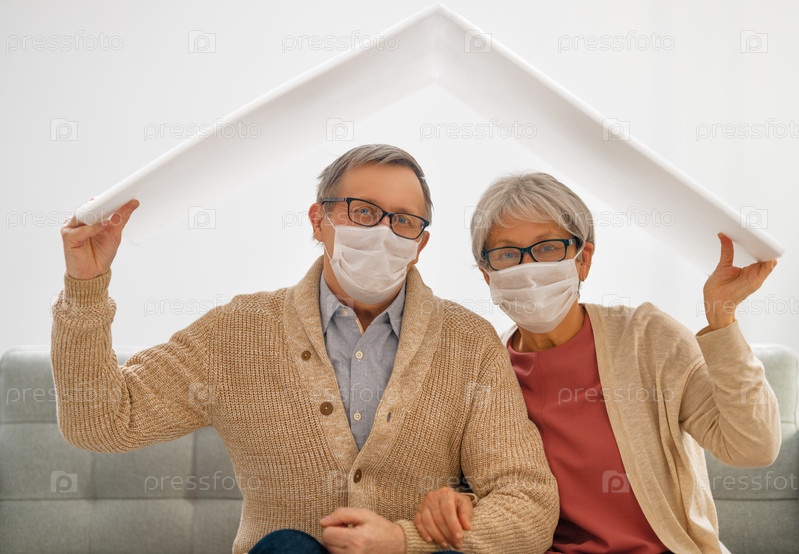 Пожилая пара в масках