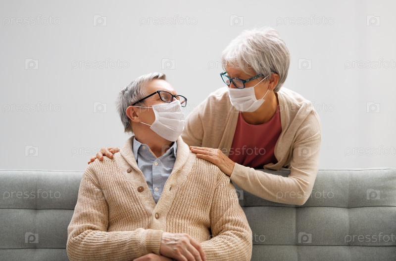 Пожилая пара в масках