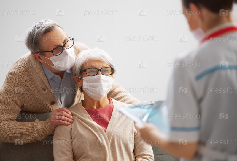 Доктор и пожилая пара в масках