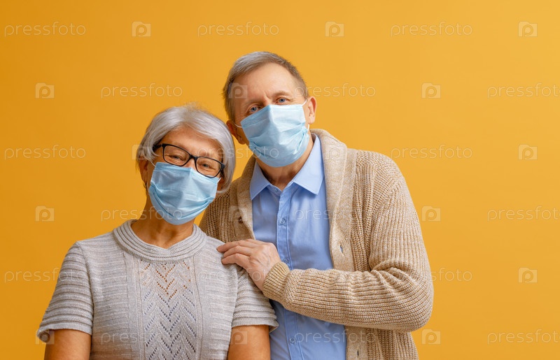 Пожилая пара в маске