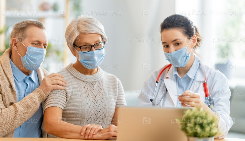 Доктор и пожилая пара в масках