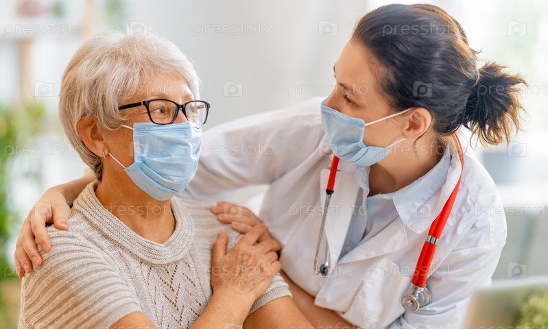 Доктор и пожилая женщина в масках