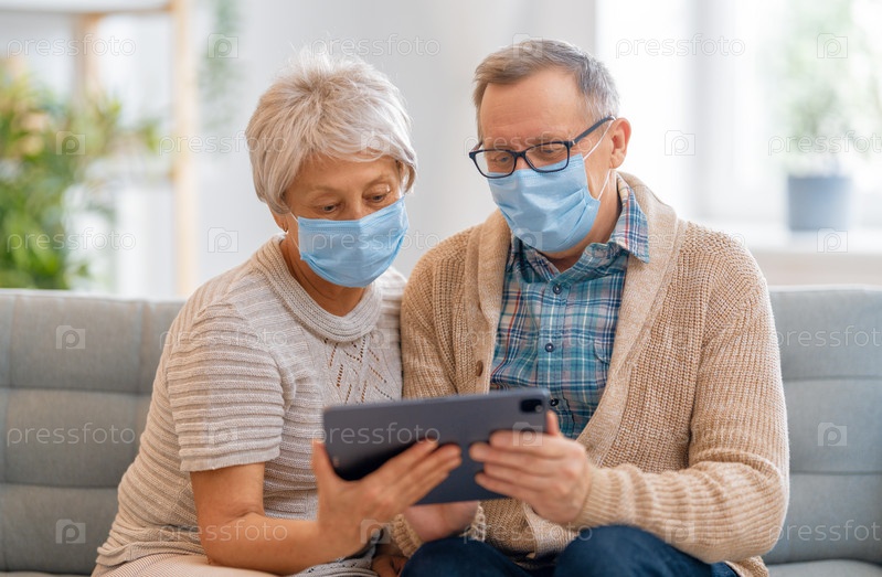 Пожилая пара в масках