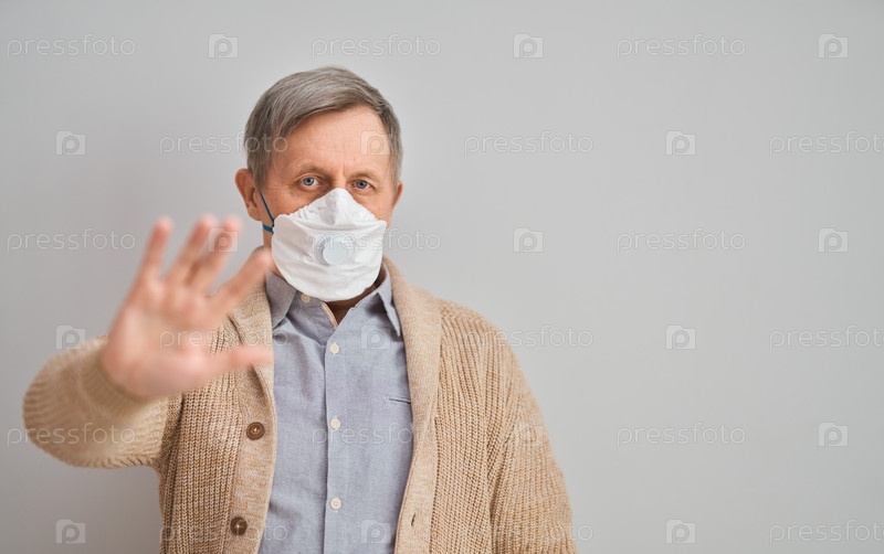 Пожилой седой мужчина в маске