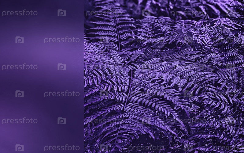 Ультрафиолетовые листья папоротника крупным планом с копировальным пространством