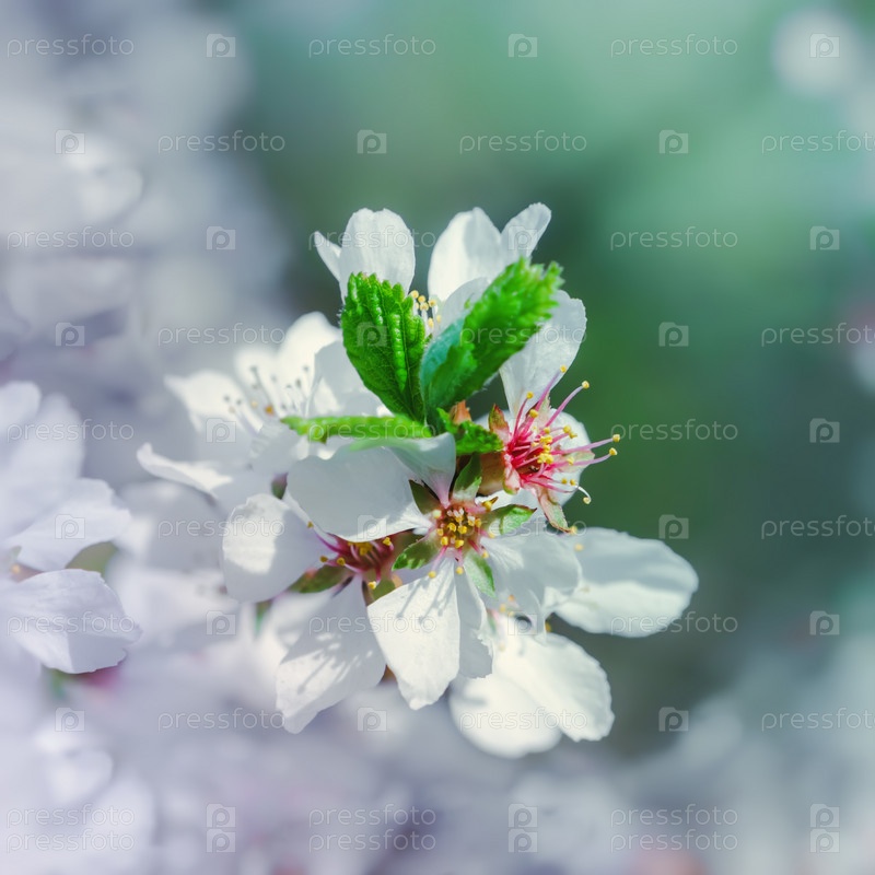 Белые цветы сакуры крупным планом