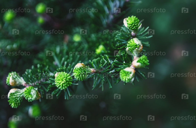 Свежие ростки корейской пихты крупным планом