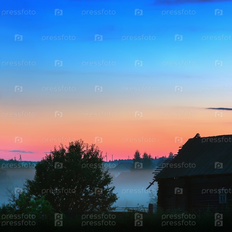 Летняя туманная полночь в деревне