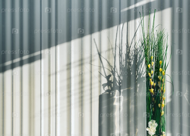 Полосатая стена комнаты и цветочный декор в солнечном свете - Шаблон