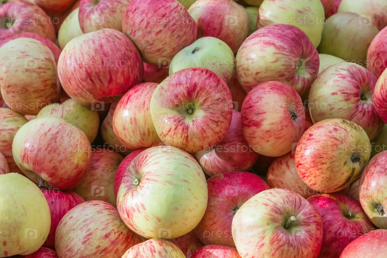 Красные и желтые свежие спелые яблоки фон