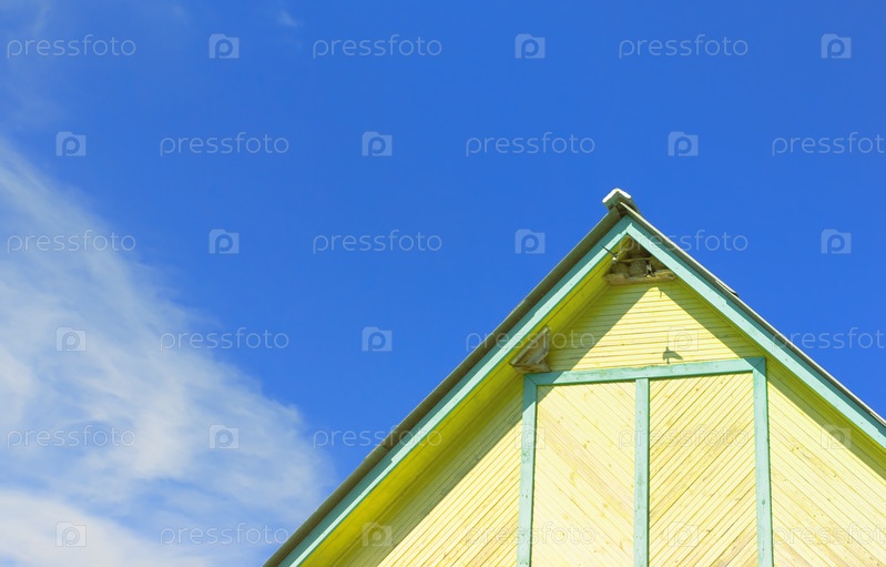 Часть деревенского деревянного здания против неба