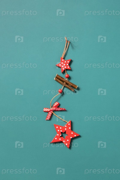 Рождественская квартира лежала с рождественскими украшениями на зеленом фоне