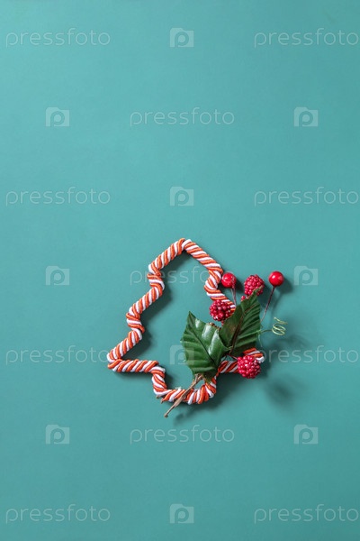 Рождественская квартира лежала с рождественскими украшениями на зеленом фоне. Скопируйте пространство