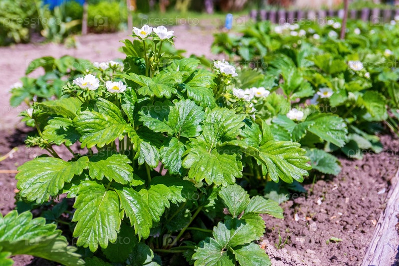 Клубничные кусты. Цветущие растения. Домашнее садоводство