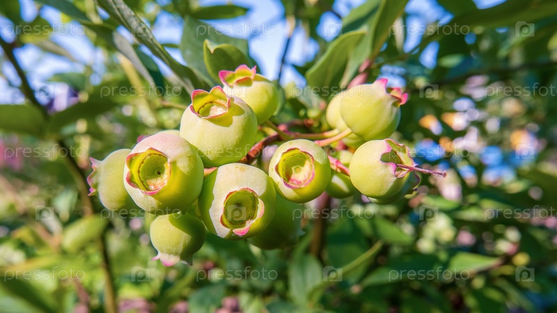Черника. На ветвях растения созревает гроздь ягод