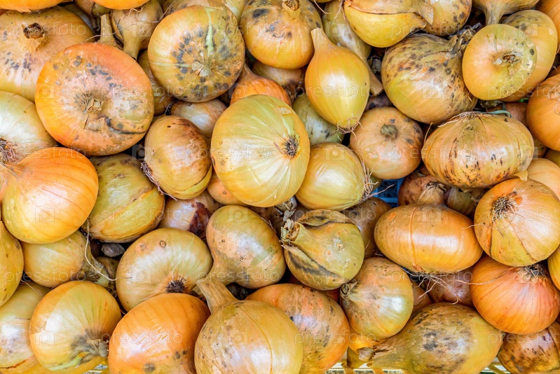 Много свежесобранного золотого лука. Золотой фон