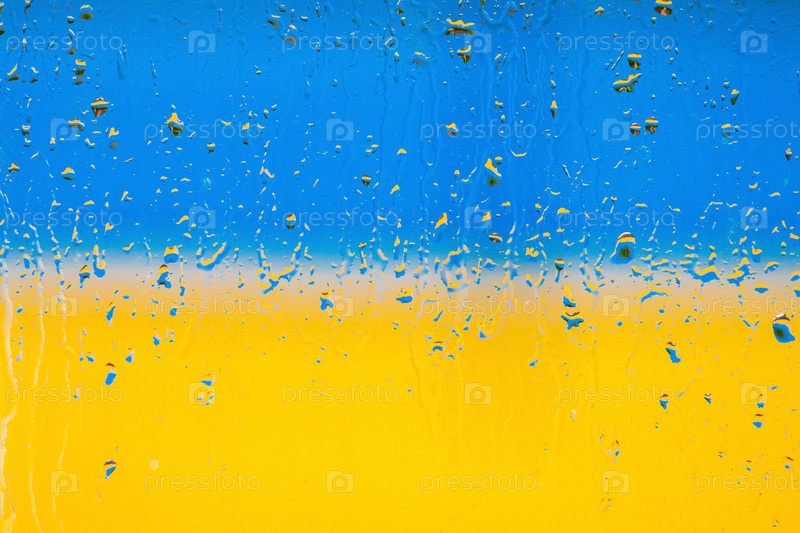 Флаг Украины. Абстракция. Капли дождя на стекле