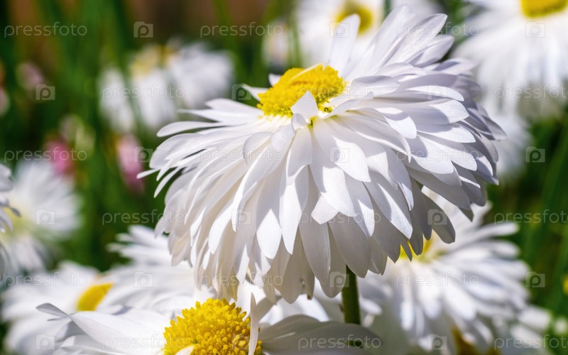 Белые летние цветы крупным планом. Ромашки. Мягкий фокус