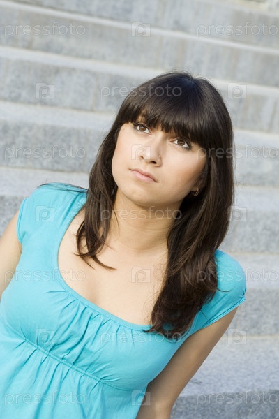 Молодая брюнетка в бирюзовой кофточке