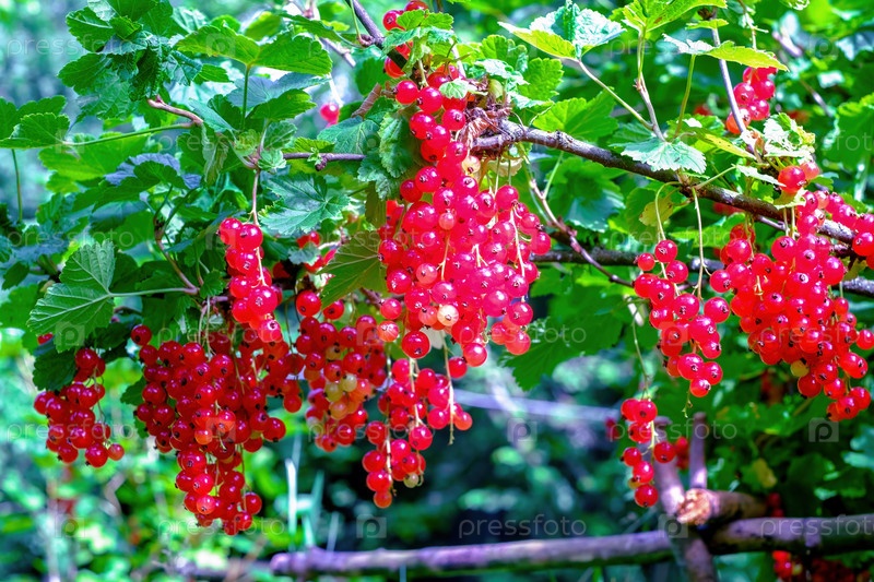 Красная смородина. Летом на кустах созревают гроздья ягод