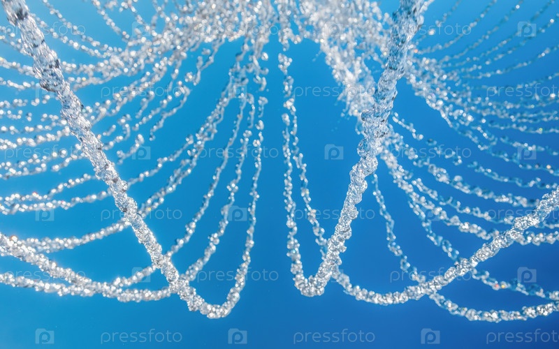 Струи воды на синем фоне. Застывший момент