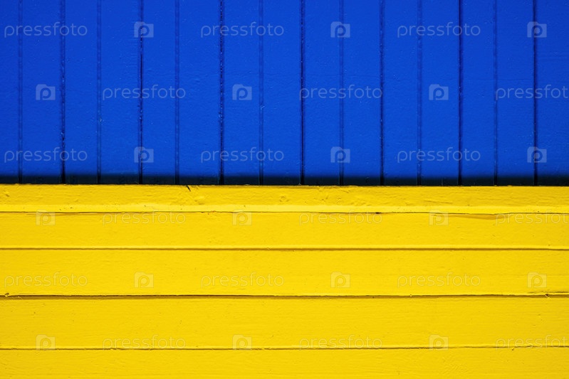 Как украинский флаг. Деревянная обшивка дома. Яркие синие и желтые цвета