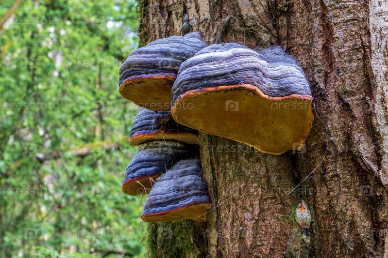 Fomitopsis pinicola - гриб, вызывающий гниение стебля, распространенный на хвойных и лиственных деревьях