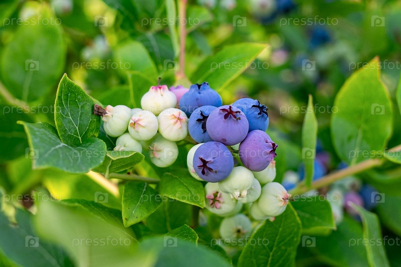 Гроздь черники созревает на кусте