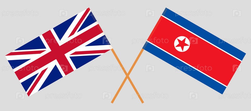 Скрещенные флаги Великобритании и Северной Кореи. Официальные пропорции, корректные цвета