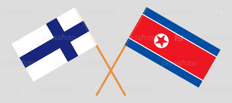 Скрещенные флаги Финляндии и Северной Кореи. Официальные пропорции, корректные цвета