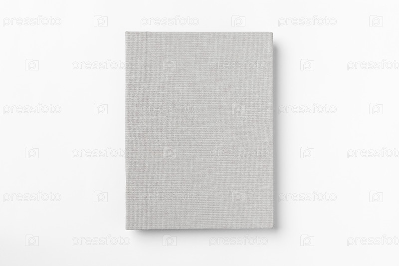 Серая книга в твердом переплете, изолированная на белом фоне. Вид сверху