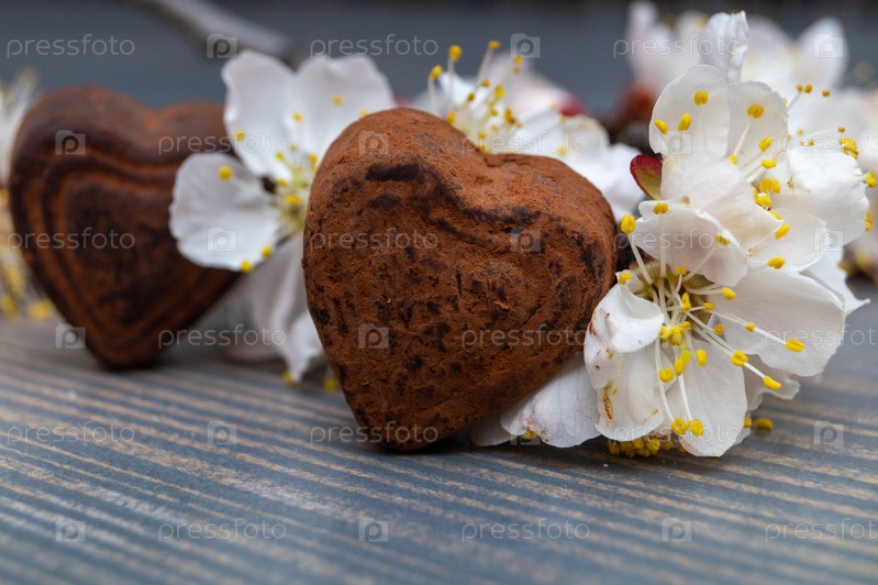 Шоколадные трюфели в виде сердца с белыми цветами