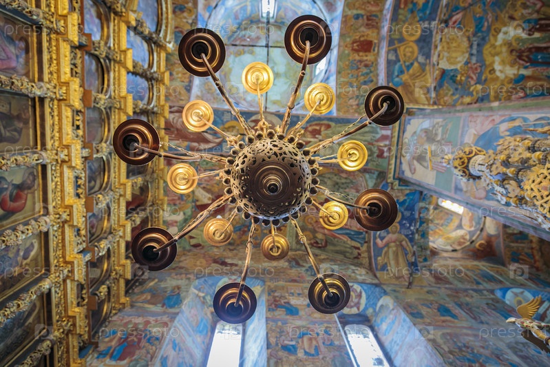 Храм Ильи Пророка в Ярославле 11.07.2019 с росписью и красивыми люстрами
