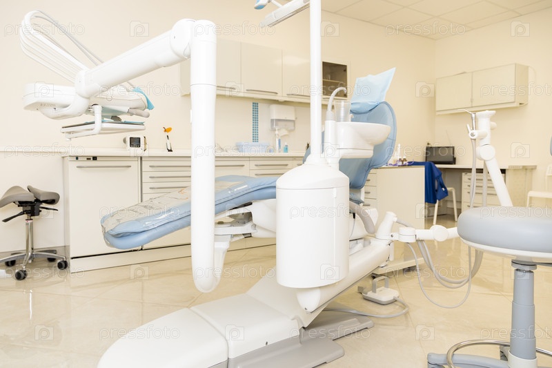 Дизайн интерьера стоматологической клиники со стулом и инструментами