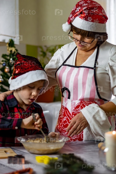 Вертикальное фото женщины, готовящей имбирные пряники на рождество с ребенком на домашней кухне