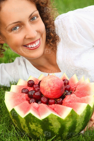 Молодая женщина с фруктами крупным планом