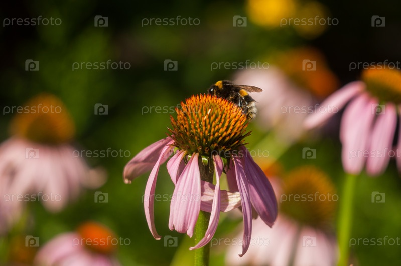 Крупный план розового цветка с пчелой