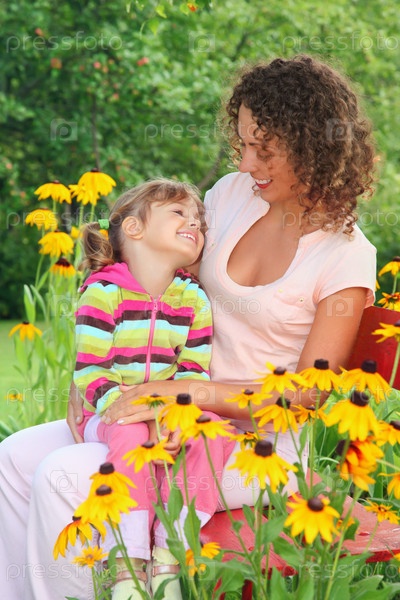 Молодая женщина с девочкой в саду