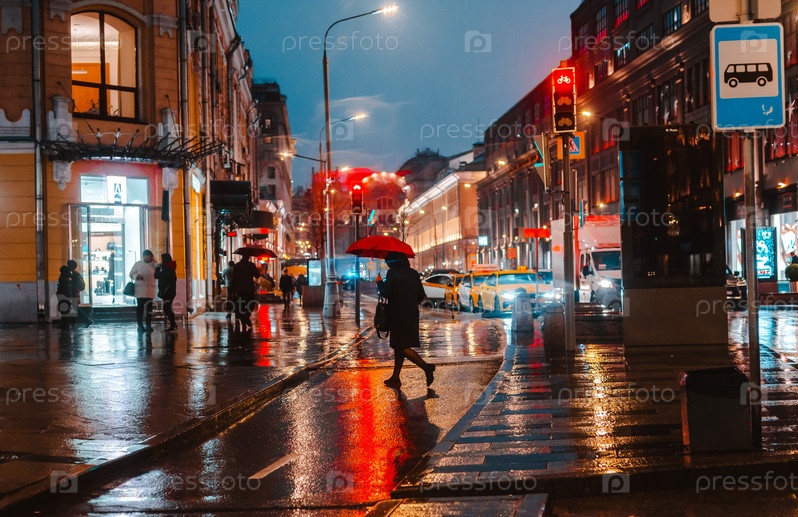 Мокрая ночь город улица дождь боке отражение яркие разноцветные огни лужи тротуар Автомобиль
