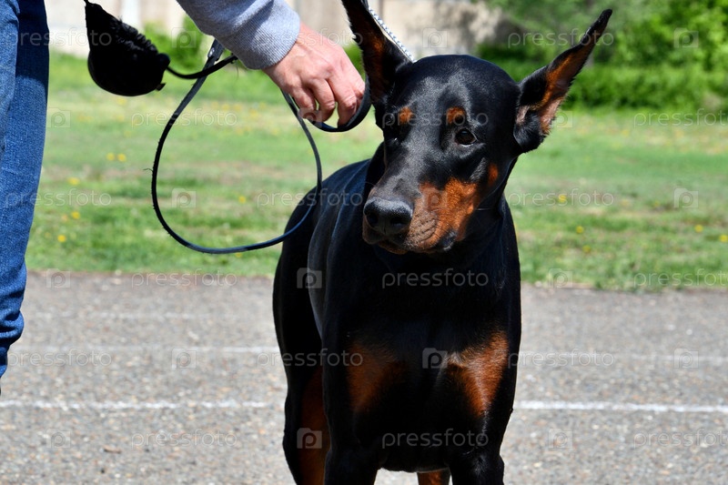 Собака породы доберман