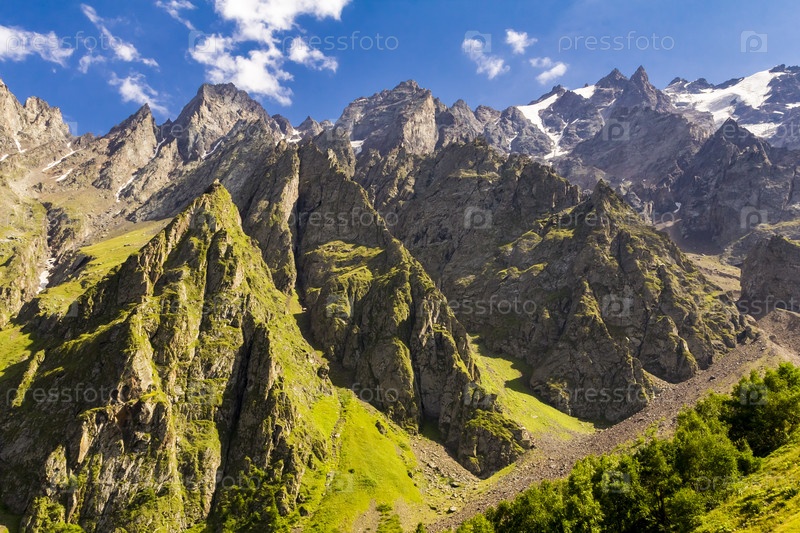 Пейзаж зеленых гор Кавказа
