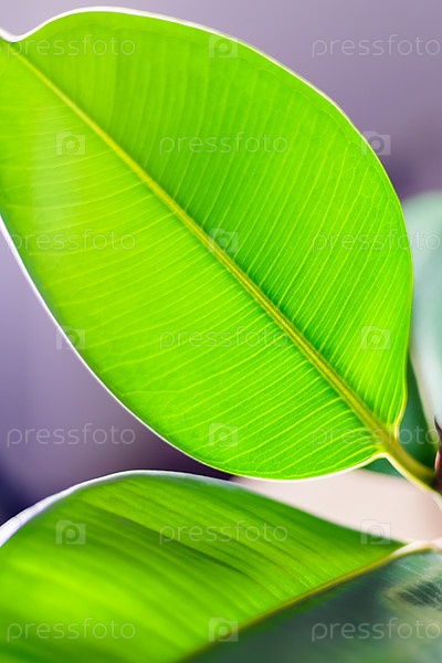 Чистые листья фикуса освещаются светом. Сочный зеленый цвет, фон
