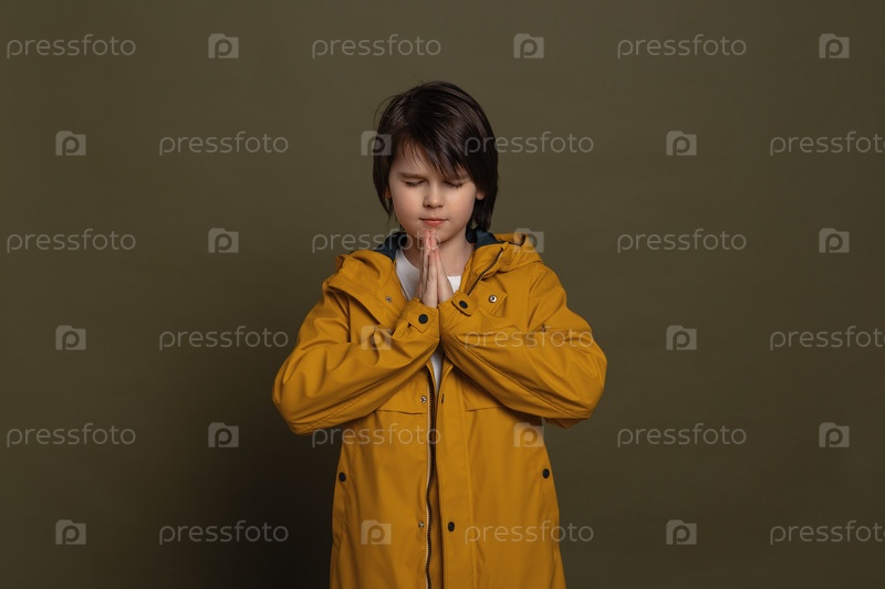 Симпатичный маленький мальчик сжимает ладони вместе с сожалением, прося прощения. Прости меня, Пожалуйста