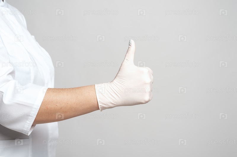 Обрезанный вид врача, показывающего большой палец вверх, изолированный на сером фоне. Концепция медицины, профессии и здравоохранения