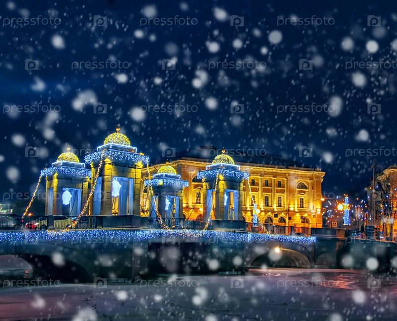 Волшебная зимняя ночь в Санкт-Петербурге, Россия