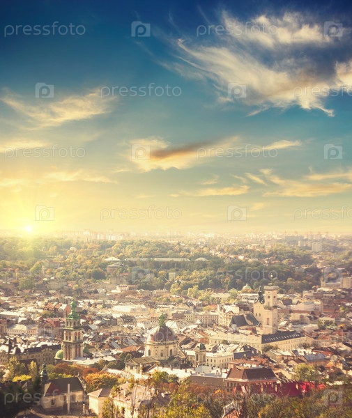 Вид с воздуха на Львов, Украина, на закате сезона. фон путешествия