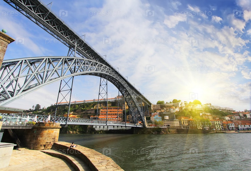 Вид на реку Дору и мост Дом Луис, Порту, Португалия. Красочный фон путешествия